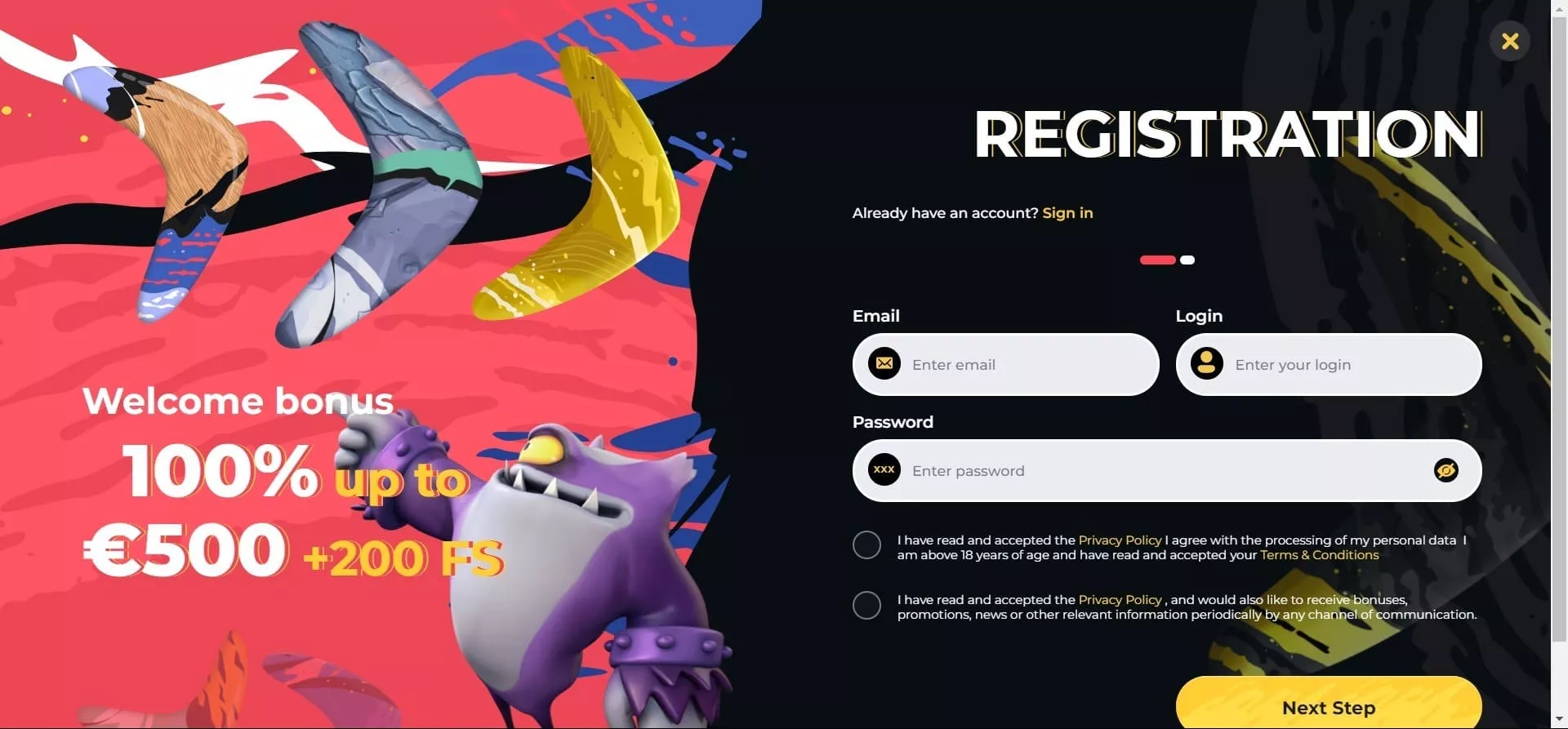 Kao što je i slučaj na većini online casina, registracija na Boomerang Casino stranici je brza i jednostavna. Potrebna su tri koraka koji vas dijele od registracije na ovaj genijalan online casino.