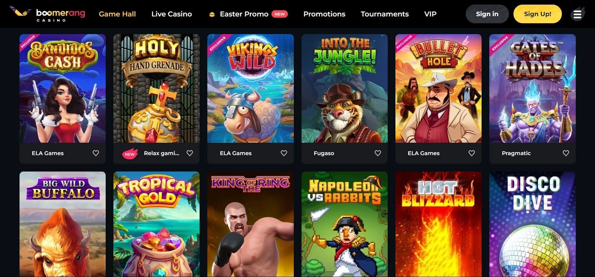 Boomerang Casino se udružio s renomiranim pružateljima usluga, kako bi ponudio raznoliku i privlačnu knjižnicu igara. Bilo da uživate u klasičnim automatima, modernim video automatima, stolnim igrama ili iskustvima djelitelja uživo, uz ovako šarolik izbor providera ste sigurno da ćete se odlično zabaviti. Očito je da je Boomerang Casino pomno odabrao igre, kako bi zadovoljio ukuse i preferencije svakog igrača, što ga čini omiljenom opcijom za entuzijaste online casina.