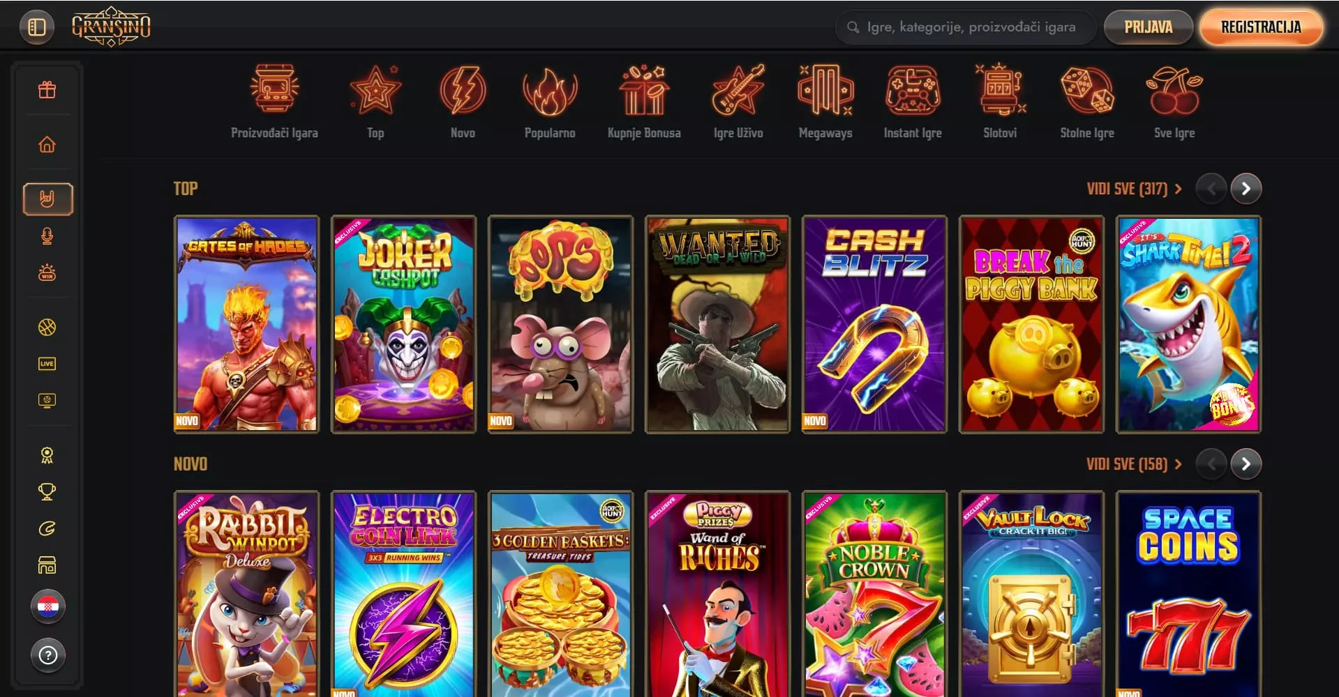 Gransino nije velik casino, on je ogroman. Na svom repertoaru ima preko 9 000 igara od preko 100 dobavljača softvera, uključujući: