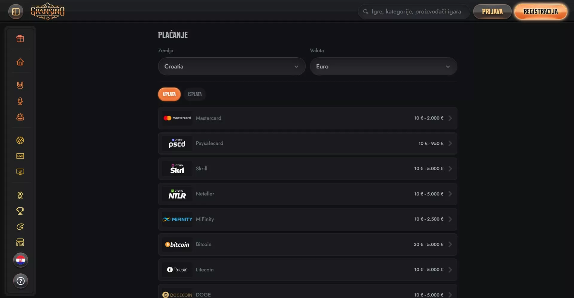 Nakon što se registrirate u Gransino online casino, morat ćete uplatiti stvaran novac na svoj račun kako bi osvojili stvaran dobitak. Bez obzira koristite li desktop ili mobilnu verziju, uplate i isplate ostaju jednostavne!
