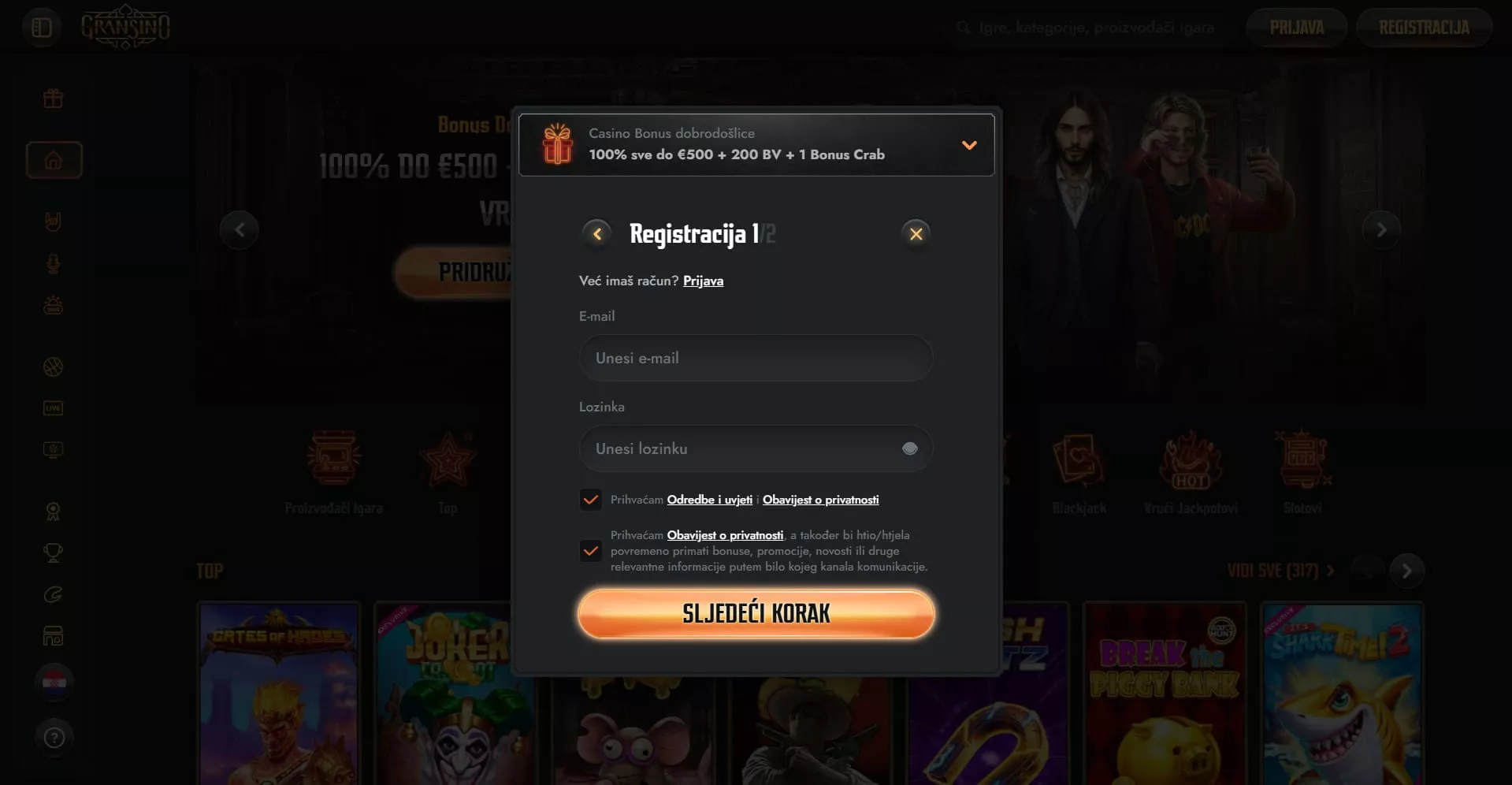 Bonus dobrodošlice 100% sve do €500 + 200 BV + 1 Bonus Crab