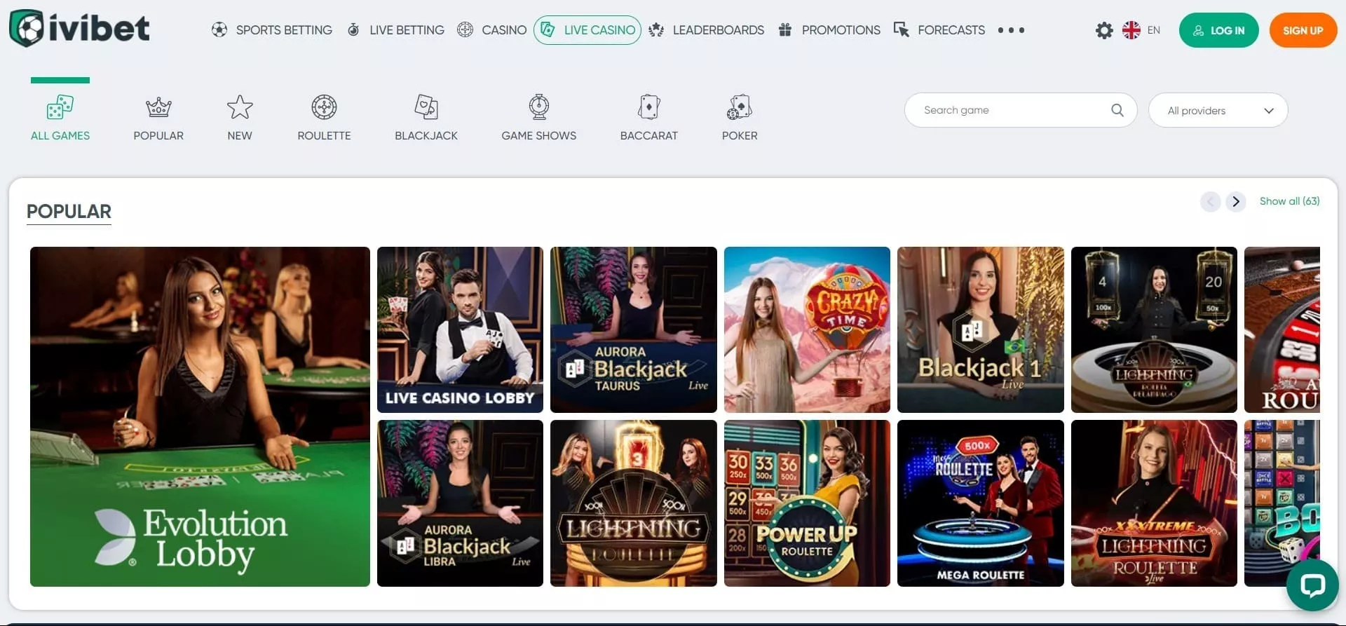 Oni koji tvrde da je Ivibet najbolji kazino prije svega su oduševljeni igrama koje se odvijaju u realnom vremenu, jer takve nemamo u hrvatskim kockarnicama. Vivo Gaming, Ezugi, Evolution i TVBet samo su neki od proizvođača ovakvih igara, u kojima voditelj pred vama dijeli karte i pokreće kuglicu ruleta.