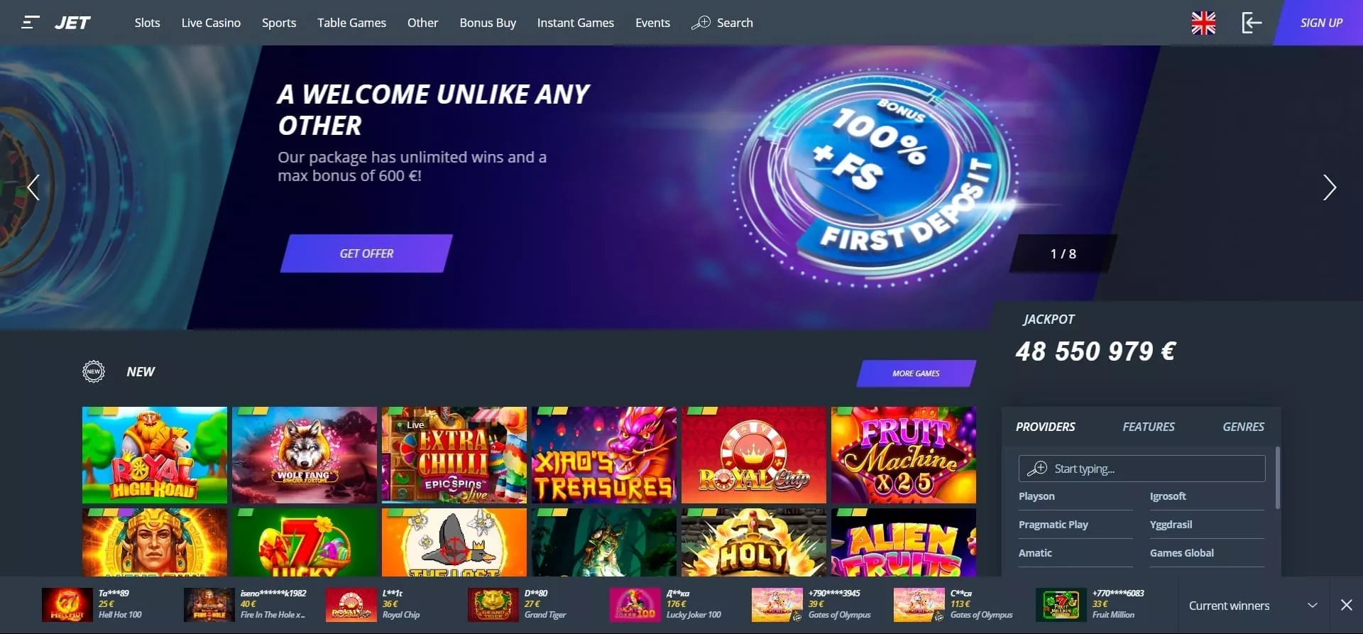 Ruku na srce, Jet online Casino je uistinu obožavan zbog savršenog online casino iskustva zahvaljujući visoko kvalitetnoj igračoj platformi i korisničkom iskustvu. Oduševiti će vas sa odličnim izborom igara na sreću, kao i mnogobrojnim načinima za uplatu i isplatu depozita.