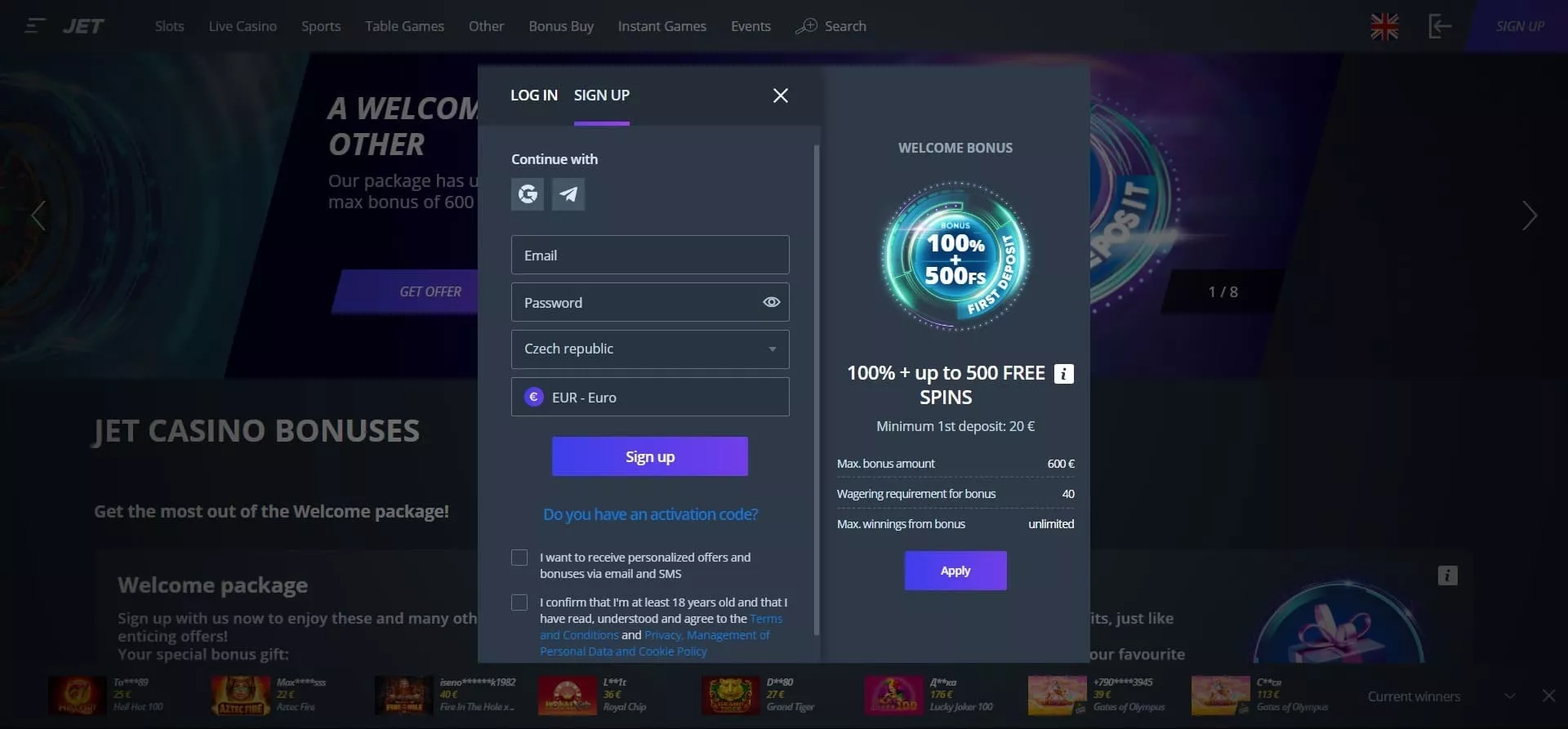 Kako se prijaviti na Jet Casino?