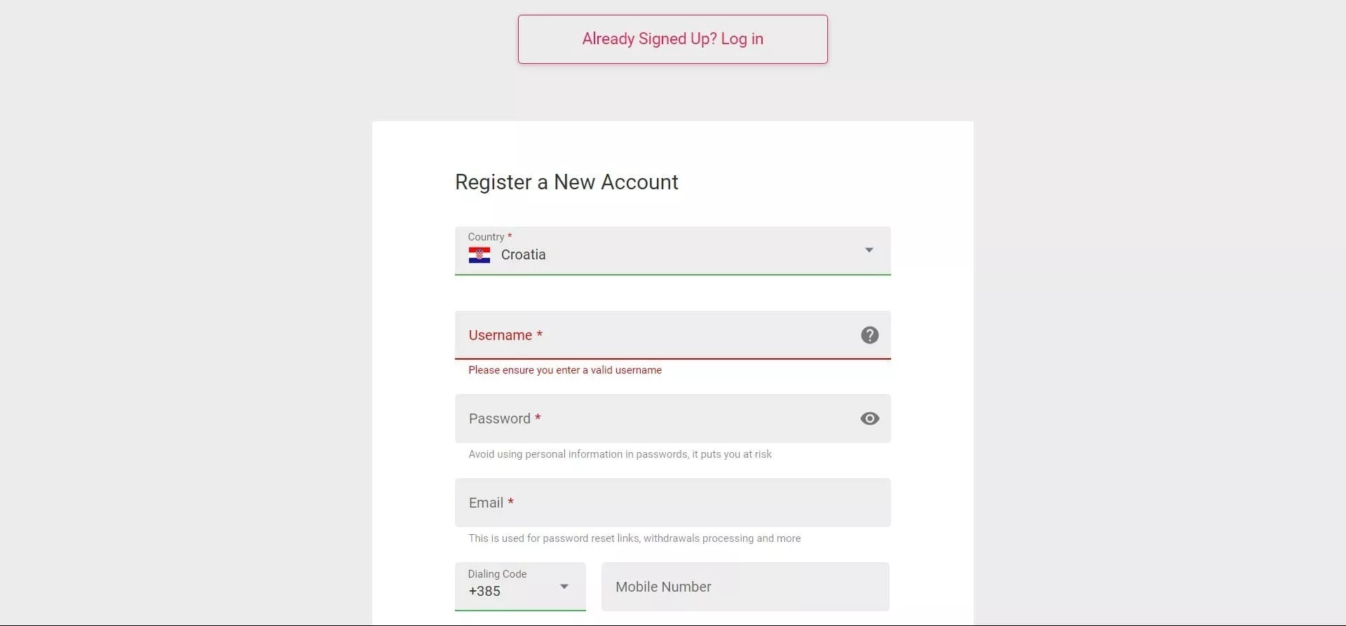 Unesite vaš email, broj telefona i datum rođenja te odaberite Hrvatsku kao zemlju iz koje dolazite.